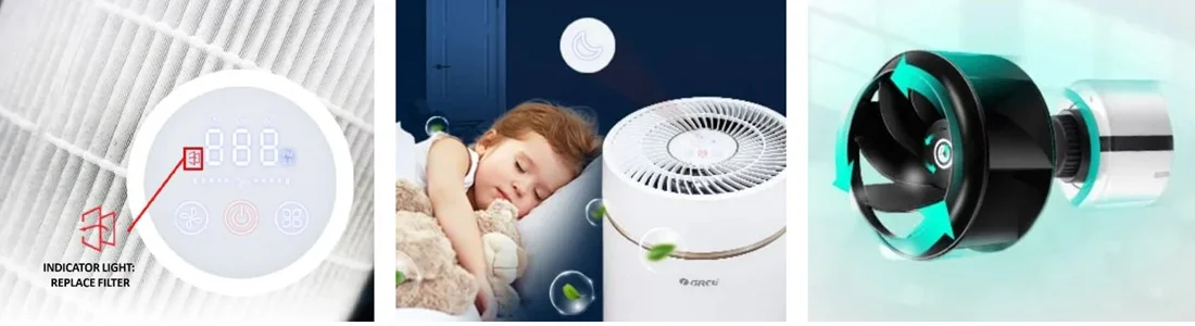 کیفیت برتر تصفیه هوا گری GCF350 در ویژگی های فوق به خوبی مشهود است اما برای نشان دادن سایر قابلیت ها لازم است که بیشتر روی مشخصه های گری مانور داد. این محصول دارای عملکرد سیگنالینگ یا تغییر فیلتر است. این آپشن به کاربر نشان می دهد که زمان تعویض فیلتر فرا رسیده است. طبیعتا وقتی تصفیه هوا روشن است صدا به گوش می رسد، گری GCF350 در حالت خواب سطح صدا را به 27 دسی بل می رساند و قادر است که آرامش کلی را تثبیت بخشد. موتور اینورتر DC کاهش مصرف انرژی و طول عمر بالا این تصفیه هوا را شامل می شود و کمک می کند که به سادگی ممکن از ظرفیت موجود بهره گرفته شود. ساختار حرفه ای است و کاربری ساده نیز صورت می گیرد تا در تمامی سطوح شاهد یک اثر بخشی خاص و پایدار باشید. هوای دفتر، اتاق کار و فضای مورد نظر به راجتی تمیز و با طراوت است.