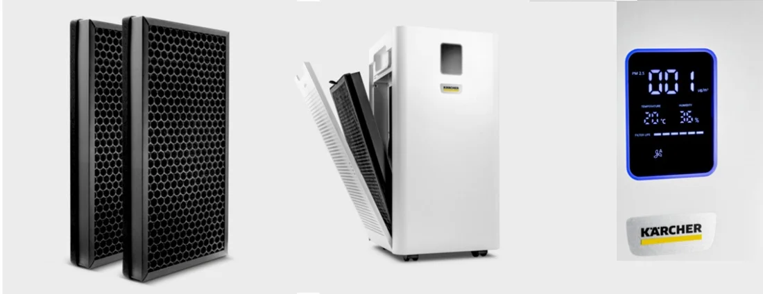 تصفیه هوا کارچر AF 30 یک فیلتر دوگانه دارد که شامل کربن و هپا است. این فیلتر هم قابل تعویض است و هم به خوبی هر فضا را تسخیر می کند. حجم تصفیه هوا قابل قبول است. فیلتر HEPA H13 به دام انداختن گرد و غبار و ذرات معلق در هوا را یدک می کشد. این فیلتر 2500 تا 3000 ساعت طول عمر مفید دارد که به صورت میانگین اگر روزانه 8 ساعت روشن باشد، 12 ماه دوام می آورد. فیلتر بعدی کربن فعال است که این فیلتر نیز از دو لایه تشکیل شده است. این قیمت به خوبی بوی بد موجود در فضا را از بین می برد و قادر است که حذف گازهای شیمیایی سبک و VOC ها را رقم زند. این در حالی است که از بین بردن فرمالدهید و بخار مواد شوینده شامل آلاینده هایی همچون بوگیر و... را از بین ببرد. این فیلتر هپا و فیلتر کربن پکیچ کاملی برای تصفیه هوا برای هر فضایی است.