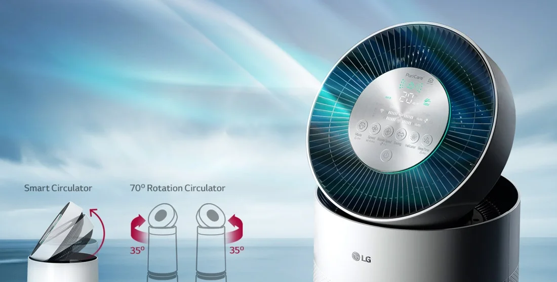 نگرش کلی این محصول جذب هوا و بازنشر هوای سالم به محیط مورد نظر است این فرآیند چنان مداوم صورت می گیرد که هر گونه ضعفی پوشش داده شود. هوای خروجی متعادل با محیط و نه سر و نه گرم است و فقط عبور دادن هوا از فیلتراسیون شش گانه است که هر گونه آلاینده ای را از بین می برد. سیستم فیلتر گذاری شش مرحله ای است یعنی به این صورت که هوای محیط جذب می شود از این فیلترها عبور داده می شود تا خروجی سالم و متناسب با استاندارد تحویل داده شود. ال جی AS95GDWV0 هوا را به صورت 360 درجه جذب می کند. دور تا دور این محصول به خوبی جذب هوا را میسر می سازد. خروجی هوا از Clean Booster نشر داده می شود. این تابع در قسمت بالا قرار دارد که می چرخد و هوا را پخش می کند. ال جی پرتاب 7.5 متری را متصور است. این دو تابع در کنار هم با سنسورهای هوشمند قادر به تصفیه هوا ایجاد هوای سالم هستند.