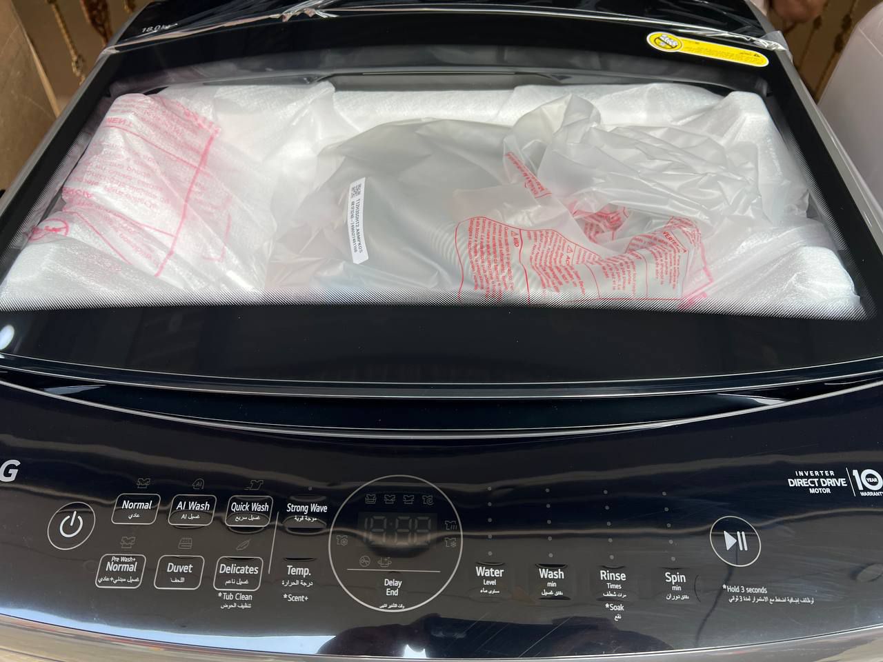 ماشین پتوشور تمام اتوماتیک درب از بالای 18 کیلویی تمام اتوماتیک موتور گیربکسی ال جی مدل T18H3SDHTW