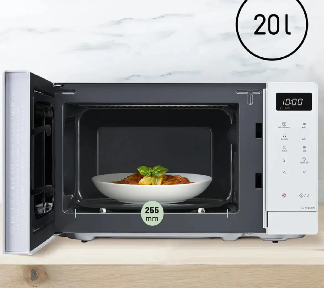 مایکروویو پاناسونیک SM255WFDG در نوع خود یک محصول با کیفیت است که با استفاده از لوازم جانبی می تواند هر غذایی را در کمترین زمان ممکن آماده سازد. بخشی از این موضوع ابزار لازم است. همراه با پاناسونیک 255 سینی چرخان تقدیم می شود. این سینی در محفظه قرار می گیرد و روی پایه هایی سوار می شود تا به صورت دورانی مواد غذایی مورد نظر مغز پخت شود. مرغ شکم پر و پیتزا با این سینی یه چیز دیگه است. خبری از وجود فن داخلی نیست و این سینی همان نقش را ایفا می کند. پوشش داخلی این مایکروویو از جنس ضد باکتری است که هم ساده تمیز می شود و هم طول عمر بالایی دارد. ضمانت یک ساله خود پاناسونیک مهر تایید بر کیفیت ناب مایکروویو مذکور است.