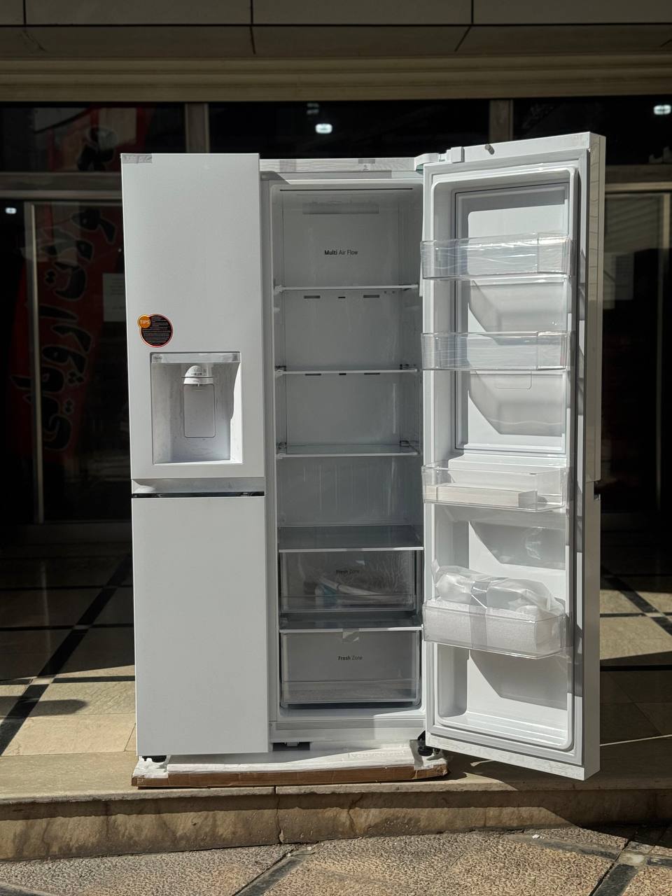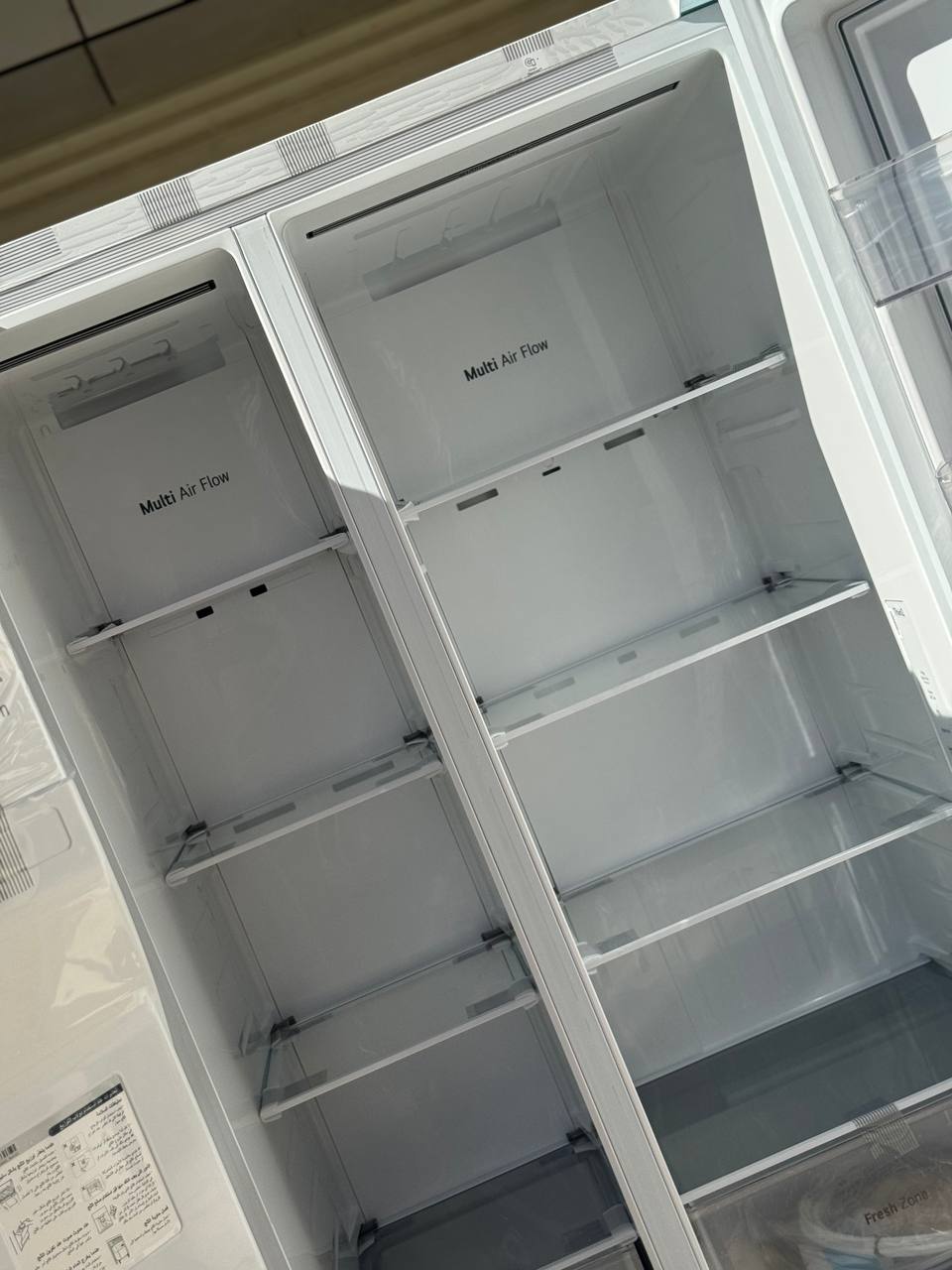 قسمت مهم در این یخچال جدا از سایر موارد به ساختار داخلی و ظاهر متمایز محصول بر می گردد. بدنه سفید و از جنس فولاد ضد زنگ است. به همین دلیل است که وزن یخچال بالغ بر 123 کیلوگرم عنوان شده است. دستگیره ها از نوع محفی هستند و می توان به راحتی وجود اعتبار را از ظاهر یخچال درک کرد. قسمت سمت راست به یخچال و قسمت سمت چپ به فریزر اختصاص دارد. نکته جالب وجود دو قابلیت بر روی هر کدام از درب های یخچال و فریز است. درب یخچال به فناوری Door-in-Door و دیگری به آبریز مجهز شده است. در قسمت بالا به آبریز اشاره شد. اما قابلیت Door-in-Door یک فناوری برای آسایش کاربر است که نزد بسیاری از کاربران به عنوان یک فناوری نام آشنا یاد می شود. این قابلیت دسترسی کاربر را به اقلام پر مصرف تسریع می بخشد و استفاده را آسان می سازد. طراحی به صورتی است که دیواره ها نازک هستند اما در عین حال حایل خوبی هستند تا تفاوت بین هوای خنک داخل یخچال و هوای بیرون بسیار مناسب باشد. برند ال جی و نما های اختصاصی تمام قابلیت ها بر روی بدنه قرار گرفته است. ساختار داخلی نیز نشان دهنده جذابیت خاص در ال جی است. با ما همراه باشید تا این قسمت را نیز به شما معرفی کنیم.