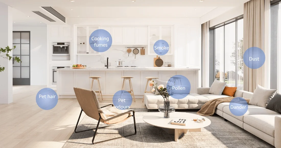 قبل از هر چیزی باید عنوان کرد که فیلتر هوا در این محصول شامل چند بخش می شود که همه ذرات موجود در هوا را شامل می شود. یکی از این فیلترها کربن است که بوی بد را دفع می کند. یکی از ویژگی های کاربردی 360° Air Intake است که نشان می دهد هوا به صورت 360 درجه جذب می شود و در پروسه تصفیه قرار می گیرد. در زیر تصفیه هوا Fan قرار دارد که هوا را دریافت می کند. هوای آلوده از زیر محصول جذب می شود و به مسیر طلایی ارجاع داده می شود که حاوی سه فیلتر است و پس از تصفیه به مسیر بالا ارجاع داده می شود و دوباره به محیط مورد نظر بازنشر می شود. این تصفیه گرد دارای قابلیتی به نام Ionizer نیز می باشد که با یون سازی و ایجاد بار الکتریکی ذرات را ته نشین می کند و حس هوای تازه را در محیط تداعی می کند. حال در ادامه به وجود فناوری های متعدد اشاره خواهیم کرد.